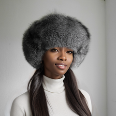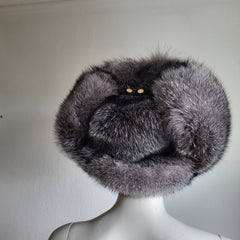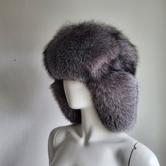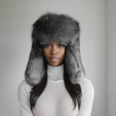 Blue frost fox Ushanka with Snap Button Closure: Luxurious fur meets ultimate convenience. Stay warm and stylish with ease.