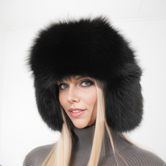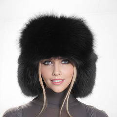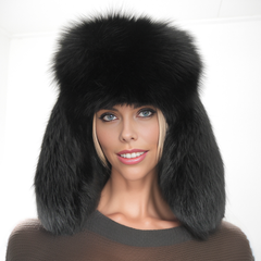 Brand new Black fox ushanka. This hat can be worn with the flaps tied on top, behind the neck or under the chin with snap button closure. The interior consists of a quilted fabric with cotton lining.